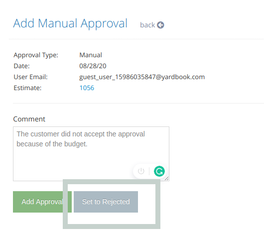 You can also record a rejected estimate by logging a manual approval record, then click the “Set to Rejected” button.