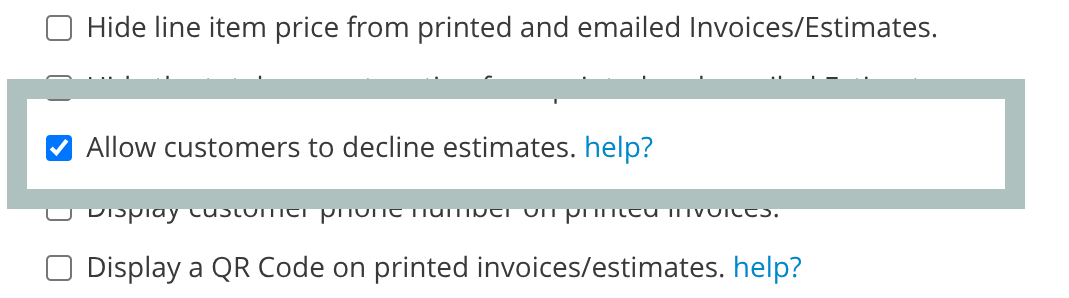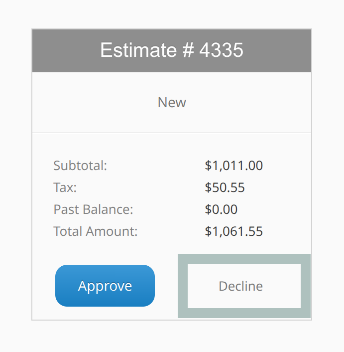 • Your customer will see a Decline Estimate link on the online estimate page.