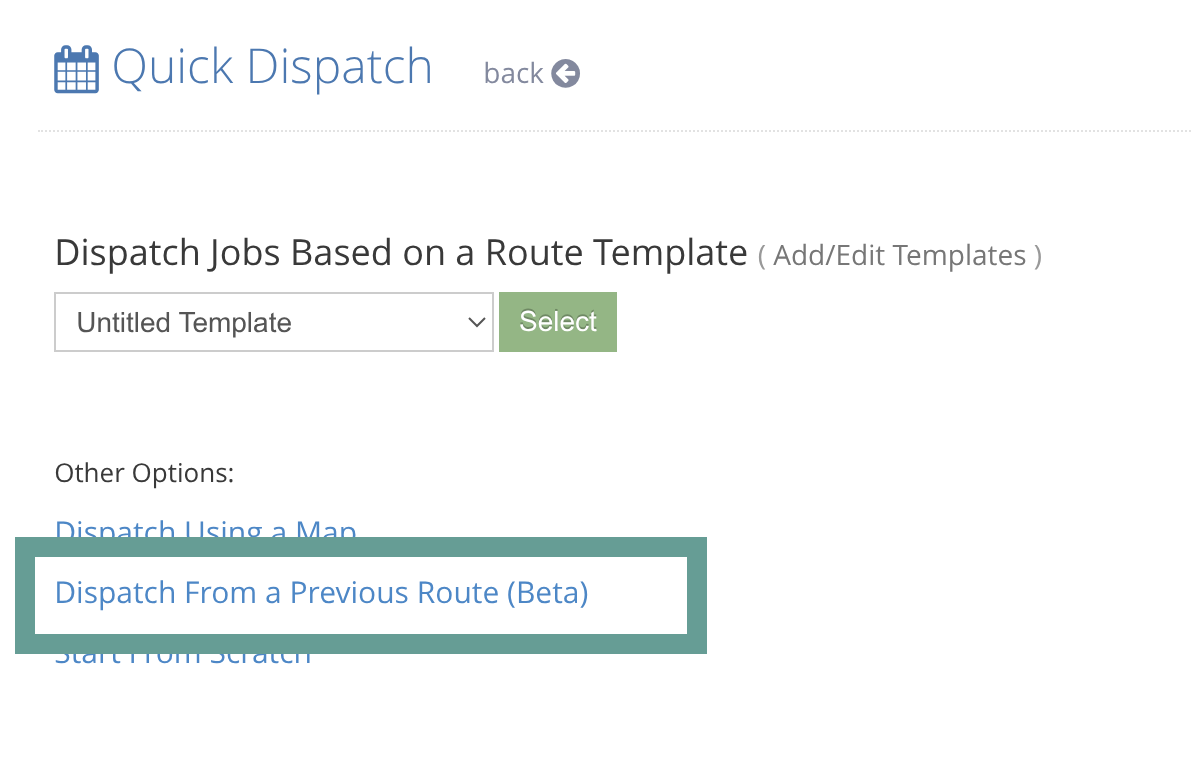 Option 4: Dispatch From a Previous Route (Beta)