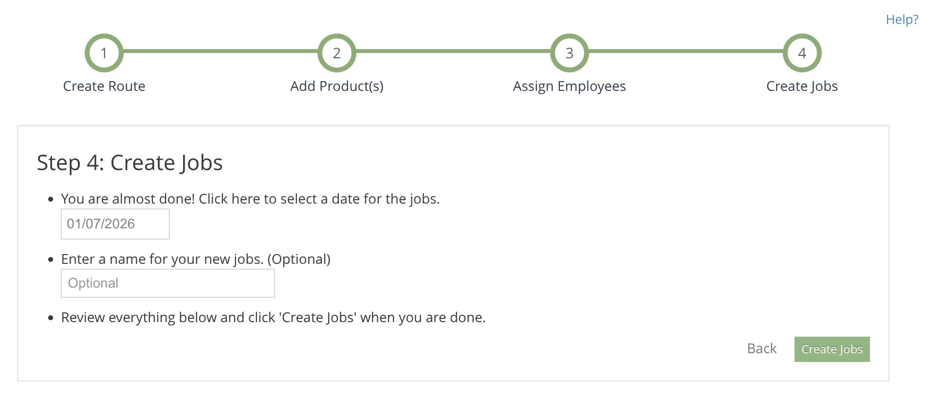 Finally, enter the date for which the jobs will start.