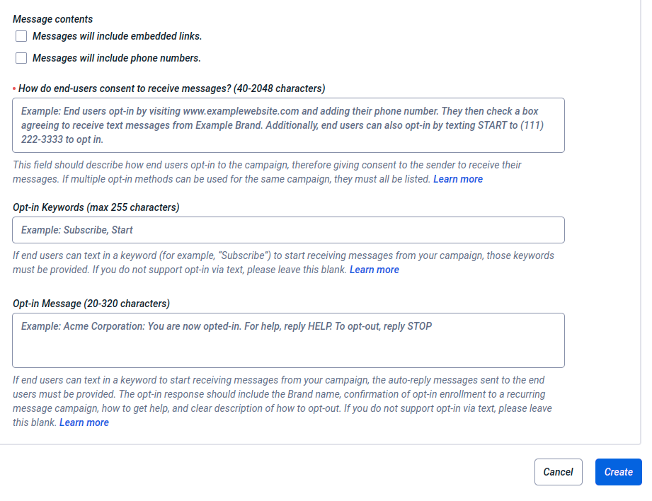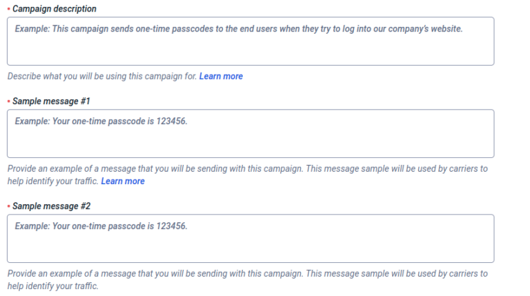 Campaign Description, Sample Messages, Opt-in Process